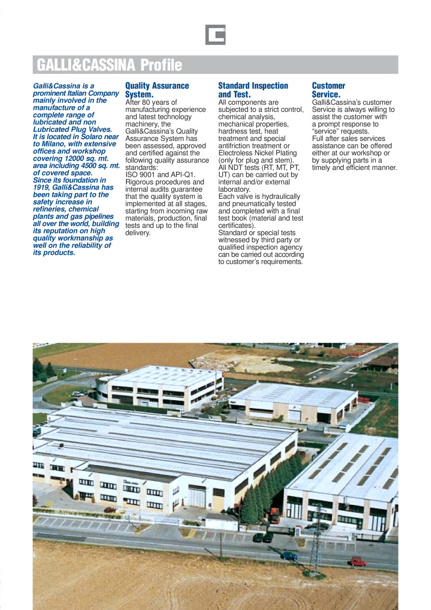 GALLI&CASSINA is a world’s leading manufacturer of plug valves for Oil & Gas