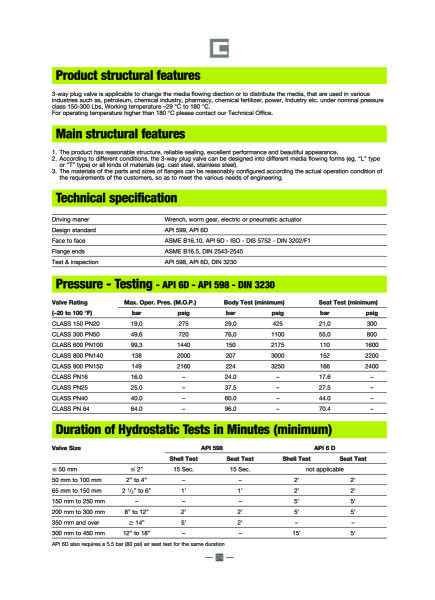 LUBRICATED PLUG VALVES PRESSURE BALANCED TYPE